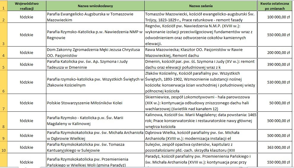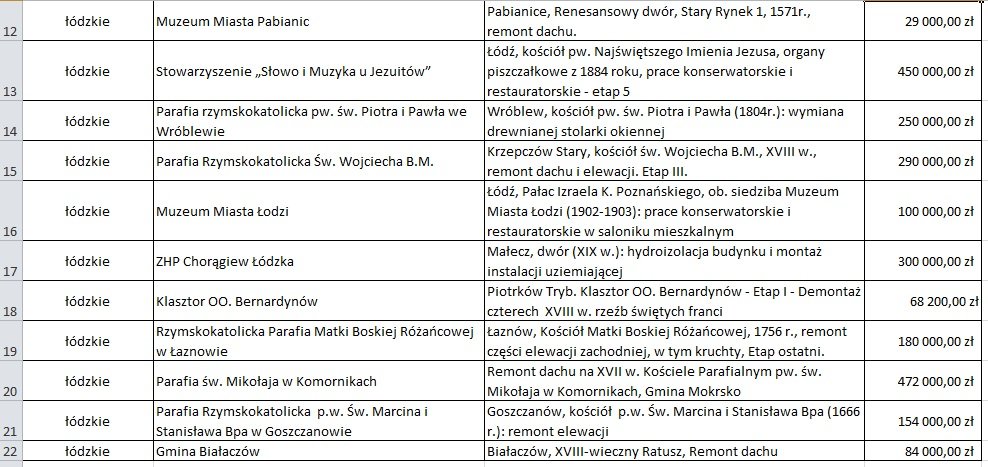 Poniżej lista wszystkich beneficjentów z Województwa Łódzkiego, którzy otrzymali dotacje z Ministerstwa Kultury i Dziedzictwa Narodowego:
