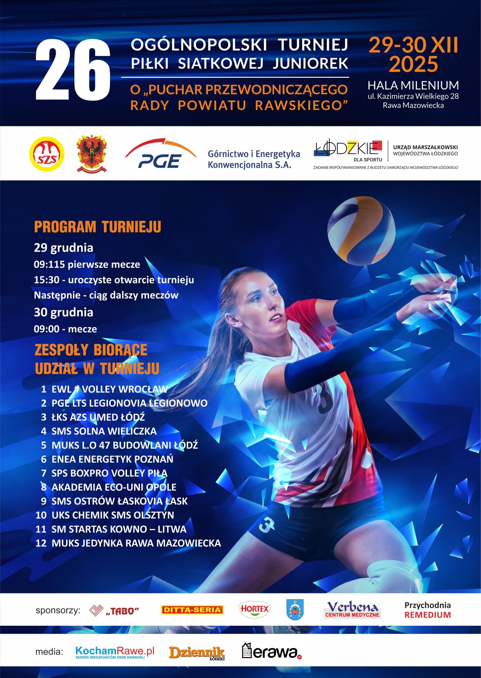 Rawa Mazowiecka jest gospodarzem już 26. Ogólnopolskiego Turnieju Piłki Siatkowej Juniorek o Puchar Przewodniczącego Rady Powiatu Rawskiego. Zawody odbędą się 29 i 30 grudnia w hali Milenium przy ul. Kazimierza Wielkiego 28.